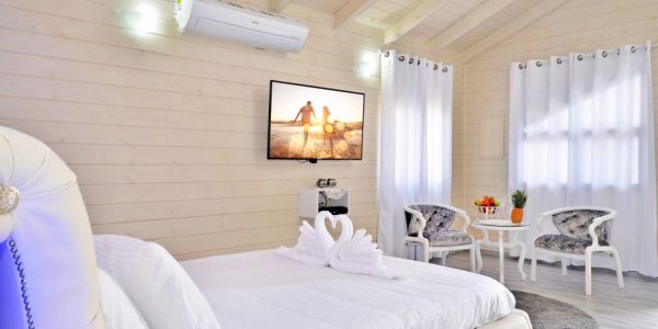 הסוויטה האקסקלוסיבית שלנו מציעה לכם חווית פרטיות אינטימית שתעשיר את הזוגיות שלכם. מיטה גדולה נוחה ומרווחת, ג'קוזי זרמים זוגי מפנק, מטבח מאובזר עם פינת קפה, כיריים חשמליות, מקרר, מיקרוגל ואפילו סכו"ם אמיתי – כל אלה יעניקו לכם שילוב של קסם עם נוחות.